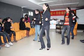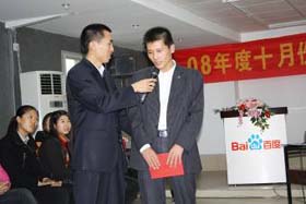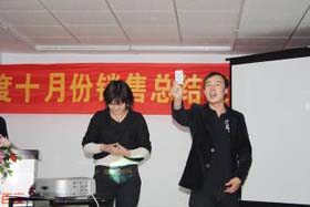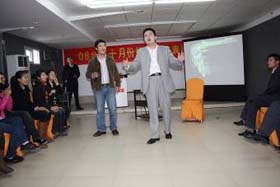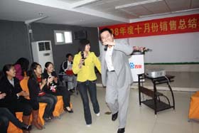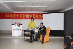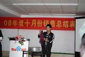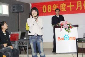 涼風(fēng)習(xí)習(xí),秋雨綿綿澆不滅我們涌動的青春、火熱的激情。2008年11月8號下午,我司十月份銷售總結(jié)表彰大會順利拉開了帷幕。百度渠道部經(jīng)理晟皞先生為此次會議作了一番別具風(fēng)格的致詞,與會人員無不熱情高漲。與其說是會議不如說是狂歡派對,大家不由自主地敞開心扉、釋放激情。