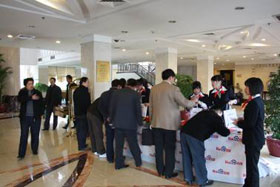 下午1:00客戶們陸續(xù)入場,我們的工作人員指導(dǎo)客戶有序簽到