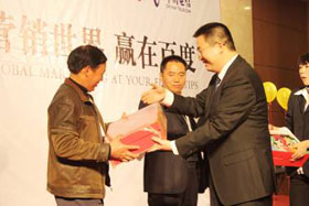 2008年11月22日,陽光絢美,鮮花競放,在這暖暖的初冬季節(jié)里,營銷世界?贏在百度——2008企業(yè)營銷峰會在鹽城市瀛州賓館拉開了帷幕。此次會議規(guī)??涨笆⒋螅?00多名企業(yè)家朋友齊聚一堂,我們還有幸邀請了鹽都?亭湖分局局長王林釗及26個鄉(xiāng)鎮(zhèn)的電信支局長擔(dān)任會議嘉賓,金牌電臺主持人楊帆先生擔(dān)任會議主持。會議開場,主持人帶領(lǐng)大家做“自我營銷”互動小游戲,娛樂之余直入會議主題。為了感謝各位企業(yè)家朋友們的光臨,本次會議特設(shè)抽獎環(huán)節(jié),第一輪抽獎環(huán)節(jié)后,企業(yè)家朋友們個個激情高漲。百度渠道部經(jīng)理晟皞先生粉墨登場,為我們帶來了精彩的主題演講。