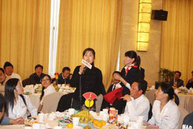 晟皞經(jīng)理為獲獎的企業(yè)家朋友們頒發(fā)獎品,企業(yè)家朋友們樂開懷