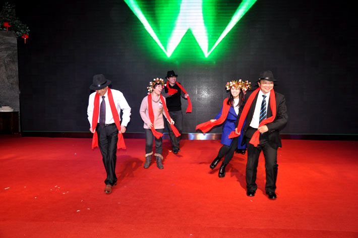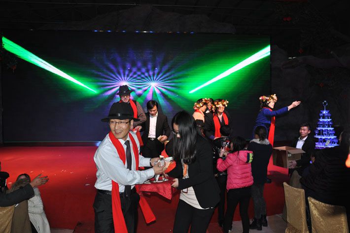 壓軸大戲,老板與總監(jiān)一起上臺(tái)跳大秧歌,伴隨著音樂(lè)到臺(tái)下給小伙伴們派發(fā)糖果和糕點(diǎn),掀起了晚宴的高潮。一片歡樂(lè)祥和的氣氛結(jié)束了此次的晚會(huì)。